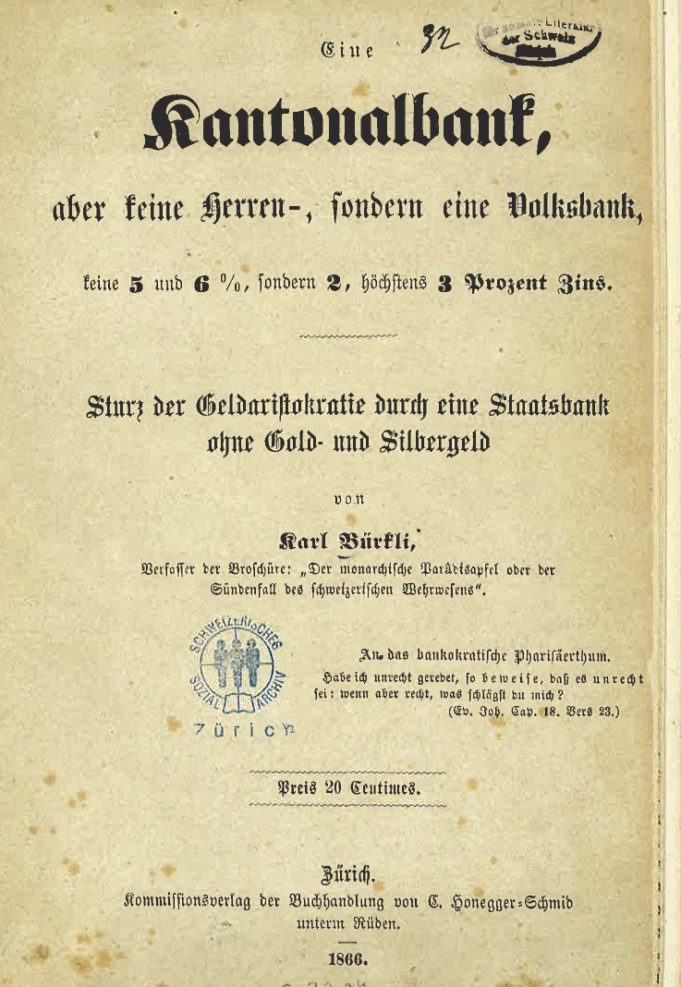Nach seiner Rückkehr nach Zürich 1858 widmete sich der ewige Junggeselle wieder in Rede und Schrift dem Kampf für die friedliche Überwindung des Kapitalismus. Bürklis Gastwirtschaft an der Metzgergasse wurde 1861-87 zu einem Begegnungsort Oppositioneller und Bürkli selbst zu einem führenden Kopf der demokratischen Bewegung. 1866 trat er der Ersten Internationale bei und war 1867-76 Gründer und Präsident ihrer Zürcher Sektion. Als Mitglied der 35er-Kommission des Verfassungsrats trug er 1868/69 wesentlich dazu bei, dass verschiedene seiner Forderungen in der neuen Kantonsverfassung verwirklicht wurden. Seit 1869 immer wieder Kantonsrat schloss er sich der im letzten Viertel des 19. Jahrhunderts entstehenden sozialdemokratischen Arbeiterbewegung an. Neben alten Forderungen vertrat er nun etwa auch die Einführung des Proporzwahlrechts. O.C.