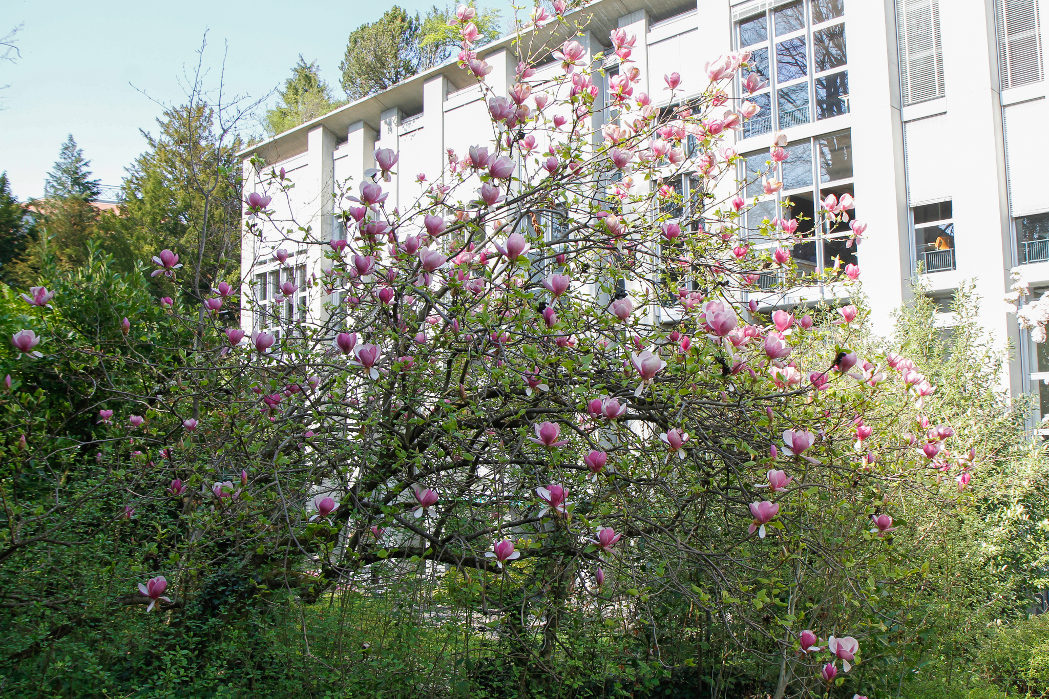Die Magnolien stammen ursprünglich aus Südostasien und Nordamerika und gehören zu einer sehr alten Pflanzenfamilie, was Funde aus der Kreidezeit beweisen. Auf Grund ihrer prächtigen Blüten wurden Magnolien oft als Garten- oder Parkgehölze gepflanzt. Wie die Scheinzypresse und der Riesenmammutbaum waren die Magnolien beliebte Gehölze in Villenquartieren. Leider sind die Blüten ziemlich empfindlich und fallen oft nach einer kalten Nacht ab.