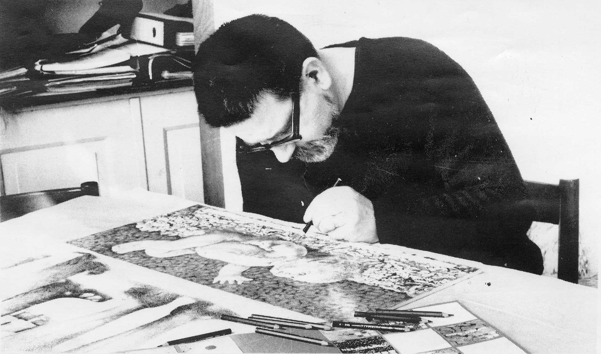 Parallel zum Unterricht setzte er seine künstlerische Tätigkeit fort – nach eigenen Worten „mit den Schwerpunkten grossformatige Zeichnung und Druckgrafik, daneben Malerei, Plakat und Wandbild. … Gegenstände, Gerät und Werkzeug sind mit Pflanzen und Tieren zusammen … bevorzugte Motive. … Kröten und Frösche seit 1971, Hühner und Eier seit ca. 1974. Auch Wildsauen, Truthähne, Enten, Schlangen, Echsen, Fische und anderes Getier“.