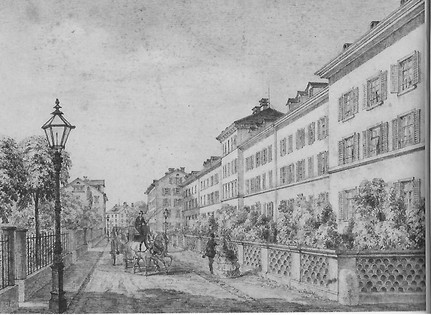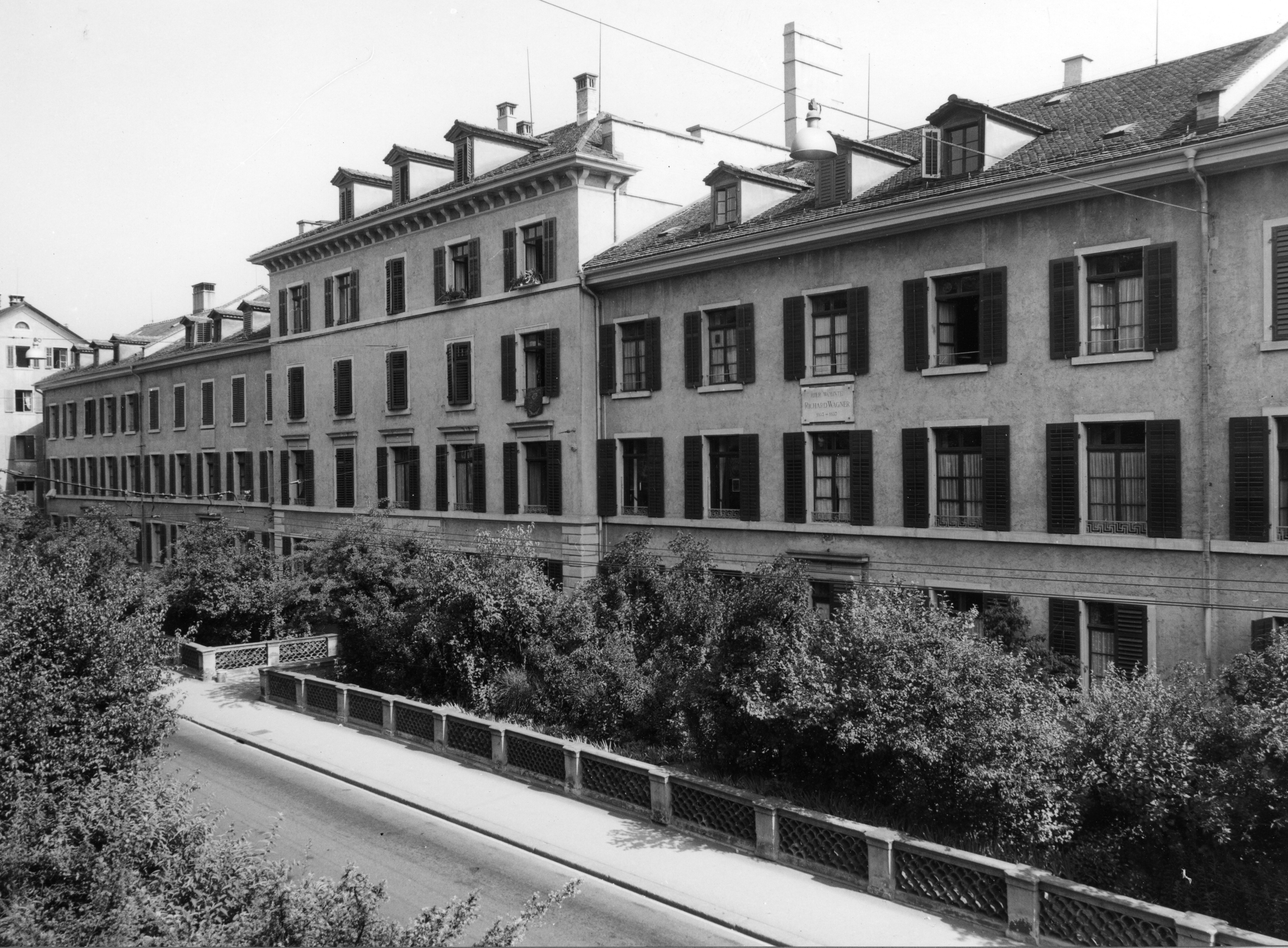 Die stattliche, klassizistische, durch Risalite und den zentralen Hofdurchgang gegliederte Gebäudezeile am Zeltweg mit den zugehörigen Hinterhäusern errichtete der Architekt Leonhard Zeugheer 1836-40. Der sich über 31 Fensterachsen ersteckende Frontbau war das erste vornehme, als Kapitalanlage errichtete Mietshaus in Zürich.