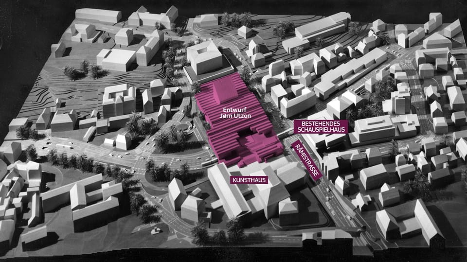 An Stelle des ehemaligen Wolfbachweihers, der beiden Turnhallen und des Turnplatzes der Alten Kantonsschule errichtete David Chipperfield (* 1953) 2016-21 einen mächtigen Kubus von mehr als 60 m Kantenlänge und 21 m Höhe, der einerseits die Sicht auf die Alte Kantonsschule auf der Schanze verstellt, andererseits den Heimplatz zum Kulturforum umgestaltet. Bereits 1934 hatte Karl Moser den Platz für einen Ausstellungsbau vorgeschlagen. Vier Jahre später propagierte Hans Hofmann, der Chefarchitekt der Landesausstellung 1939, im Zusammenhang mit der Planung des „Bührle-Baus“ die Idee einer „Kunstinsel“ am Heimplatz, der geschlossen umbaut und für Fussgänger reserviert werden sollte. In den 1960er Jahren ortete der Architekt und Publizist Alfred Roth hier „das eigentliche kulturelle Zentrum der Stadt“, das mit dem 1964 prämierten Projekt für den Schauspielhausneubau von Jörn Utzon (1918-2008), dem Erbauer der Oper in Sidney, vollendet werden sollte. Utzon schlug einen grossflächigen, sich von der Alten Kantonsschule bis in den Heimplatz hinein ersteckenden Baukörper vor. Die auf den verkehrsbefreiten Platz zuführenden Verkehrsachsen sollten als Teil des geplanten City-Rings massiv verbreitert und teilweise in den Untergrund verlegt werden. Trotz vehementer Unterstützung durch Sigfried Giedion, den Promotor des Neuen Bauens, wurde das mit umfangreichen Abbrüchen und Strassenbauten verbundene auf 86 Millionen Franken veranschlagte Projekt 1970 aufgegebenen.