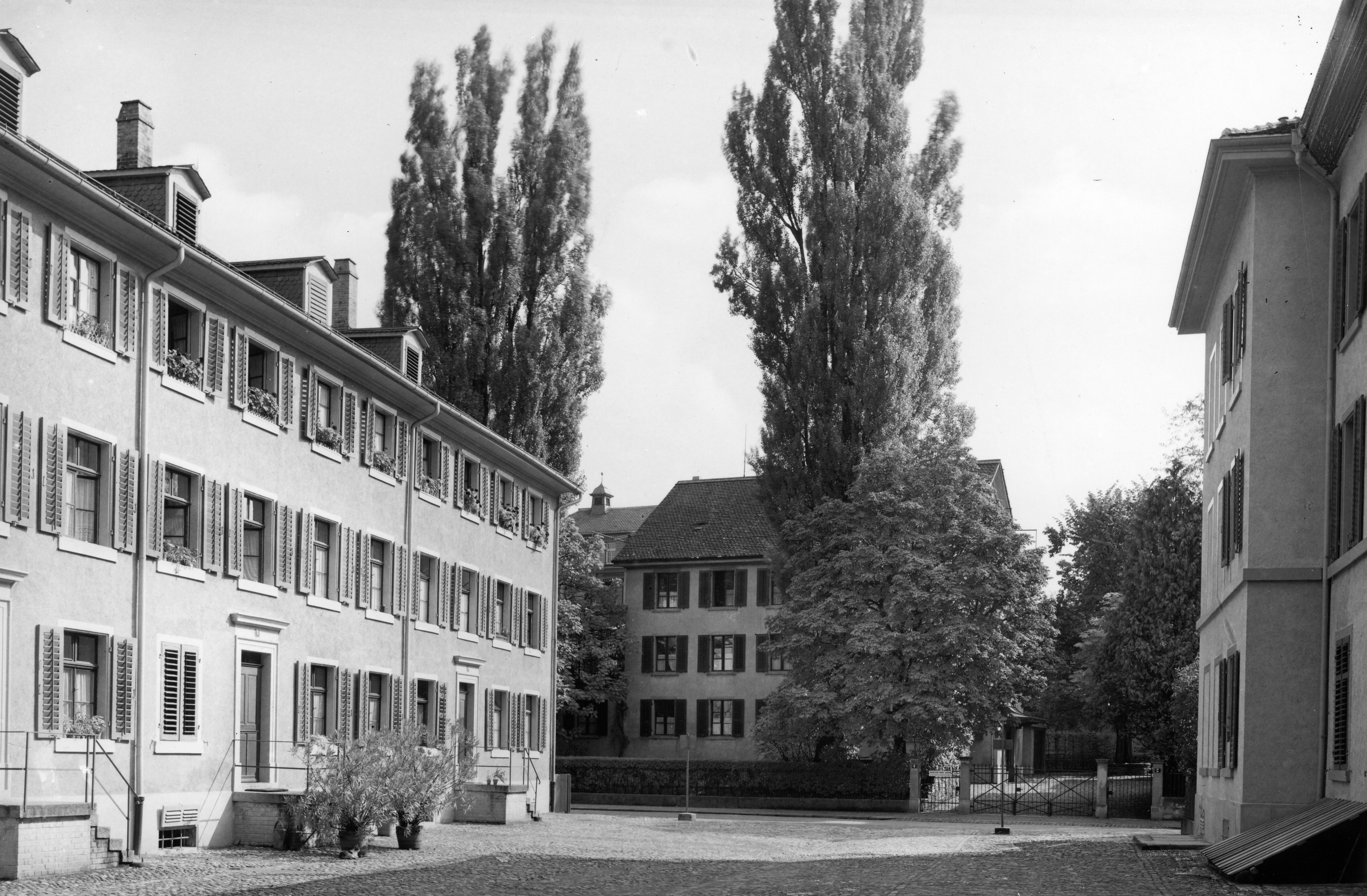 Die herrschaftlichen Wohnungen waren mit Wandtäfer, Kachelöfen mit Goldornamentik, Wand- und Deckenmalereien ausgestattet. In das repräsentative Appartement im Mitteltrakt (Nr. 11) zog die Tochter des Bauherrn, die Malerin Clementine Stockar-Escher (1816-86) mit ihrer Familie ein. Am Zeltweg 13 wohnte Richard Wagner 1849-57. Im Haus Nr. 9 lebten die Kinderbuchautorin Johanna Spyri 1886-1901 und der Komponist Paul Burkhard 1935-57. In Nr. 7 logierte der Komponist Rolf Liebermann 1948-50.