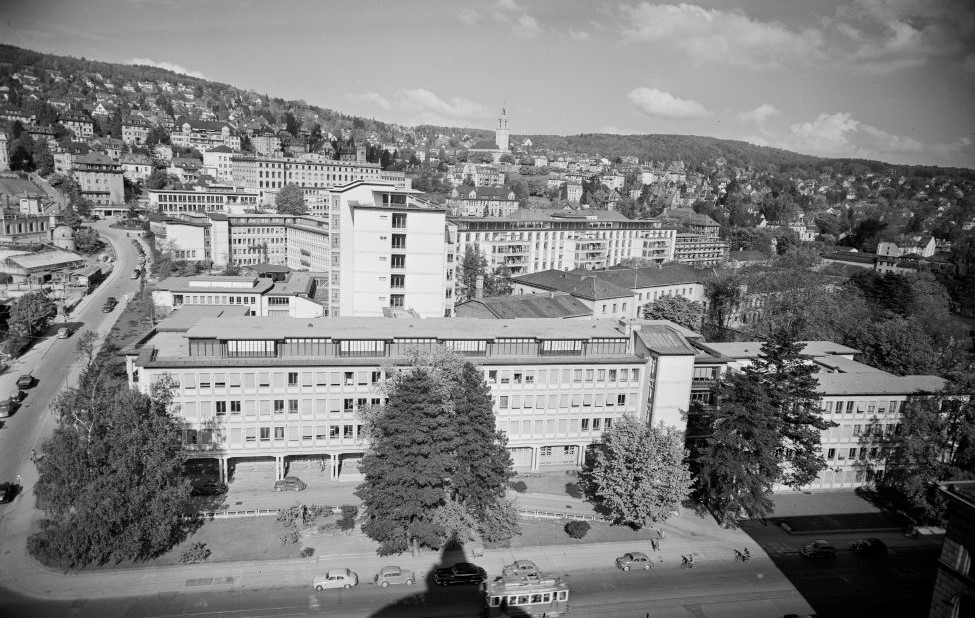 Nach längeren Diskussionen über eine grundlegende Modernisierung des Spitals wurde 1933/34 ein Ideenwettbewerb für einen Spitalneubau mit 1200 Betten beim Burghölzli ausgeschrieben. Durch die Verkürzung der Plattenstrasse und die Verlängerung der Gloriastrasse an die Rämistrasse schuf der Regierungsrat 1937 Raum für einen Spitalneubau am alten Standort in unmittelbarer Nähe zur Universität. Mit der Planung wurden die Preisträger des Ideenwettbewerbs beauftragt, die sich 1939 zur „Architektengemeinschaft für das Kantonsspital Zürich“ (AKZ) zusammenschlossen. Federführend waren Haefeli Moser Steiger (HMS: Max Ernst Haefeli, Werner M. Moser, Rudolf Steiger) und Hermann Fietz (1898-1977). Zur Organisation und architektonischen Bewältigung der vielfältigen Funktionen der Krankenversorgung, Lehre und Forschung eines modernen, effizienten Universitätsspitals gab es verschiedene, damals international diskutierte Konzepte (lineare oder kammartige Gebäudeanordnung, Block- oder Pavillonbau) und Vorbilder, darunter das von Alvar Aalto 1929-33 errichtete Sanatorium in Paimio, das Sanatorium Zonnestraal in Hilversum (1926-28) oder das Söderspital in Stockholm (1937-44).